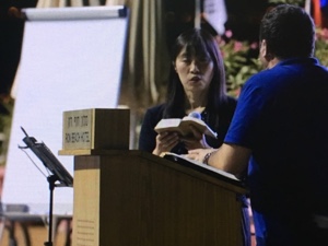 萱野さんが賛美を導きます。