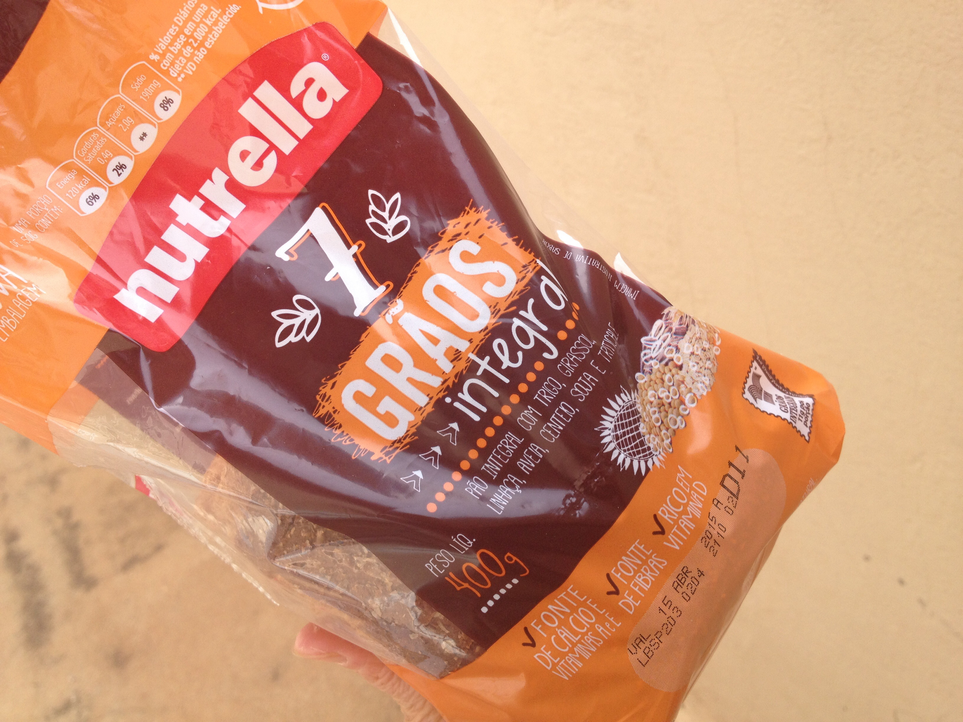 ブラジルで不足しがちなビタミンAとDがプラスされた全粒パン。400gで5.89レアル。230円くらい。お値段お高めですがブラジル人が大好きです。