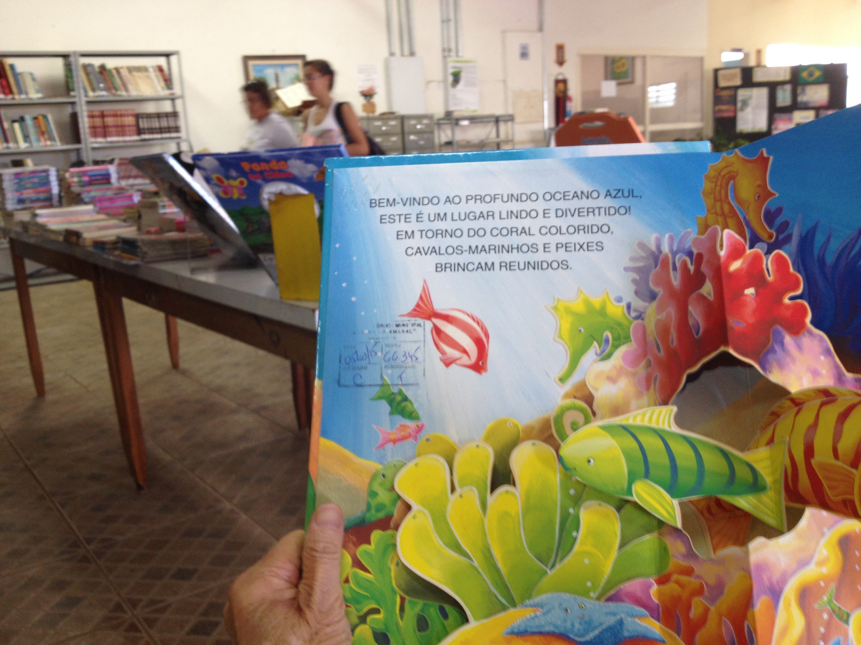 アラサトゥーバ図書館には絵本コーナーがあります。飛び出す絵本、懐かしい。小さい頃本好き少女でした。