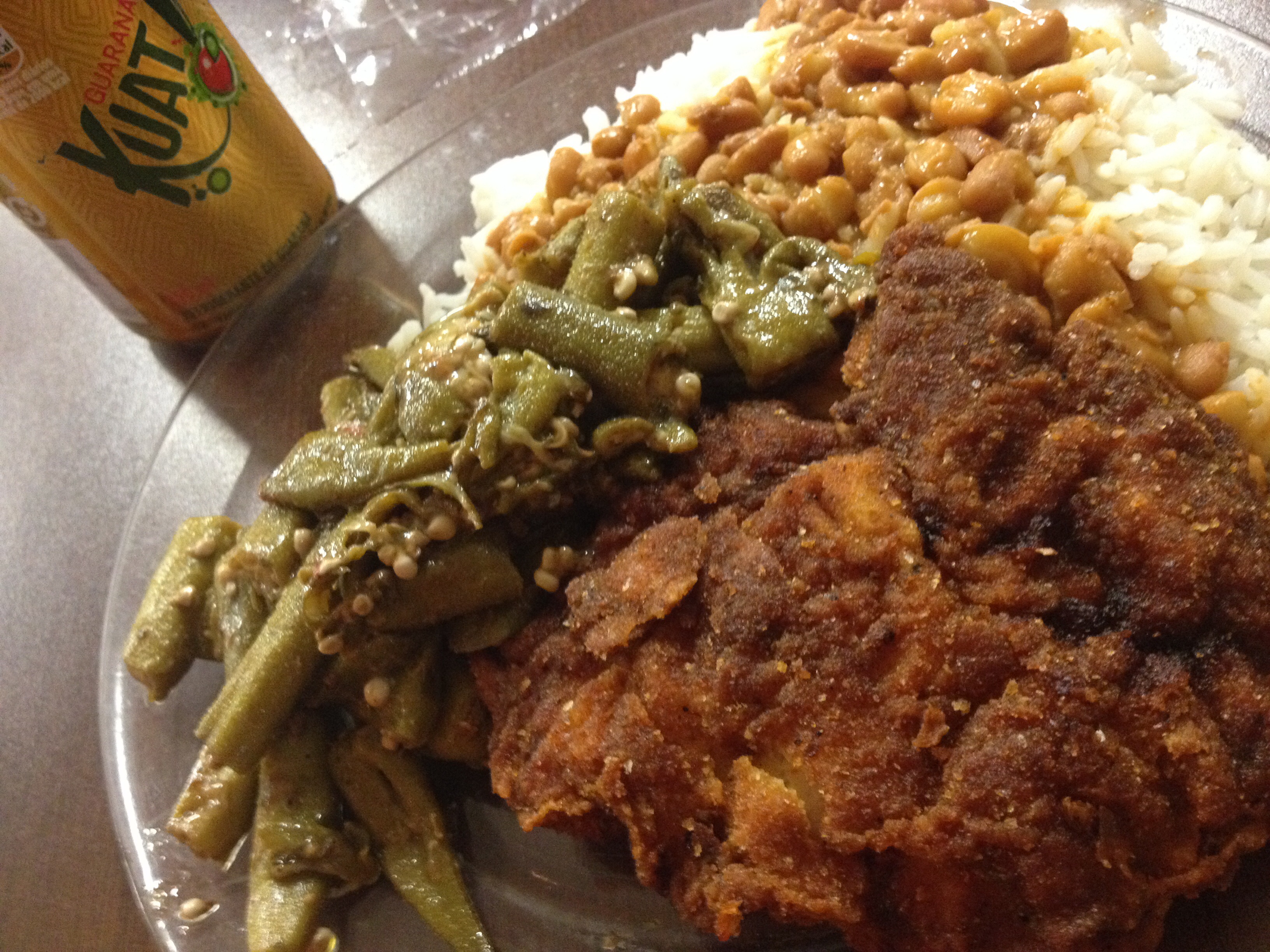 ブラジルの食事は美味しいです。珍しくトンカツがあったので、お試し。日本のようにジューシーとは行きませんが…。ご飯と豆煮込みとオクラのトマトソテー付き。飲み物とで、8.50レアル、330円くらい。
