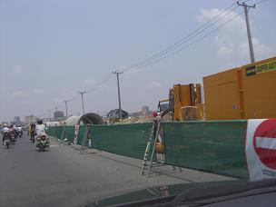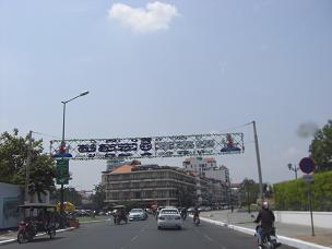 川沿いの道を通ると、目の前にクメール語で「スワスダイ チュナムトメイ!(新年おめでとう!)」とありました。