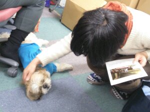 吉田スタッフが、ユテコ君を、なでなで。 ユテコ君、気持ち良さそう~~~♪ MEGUMI