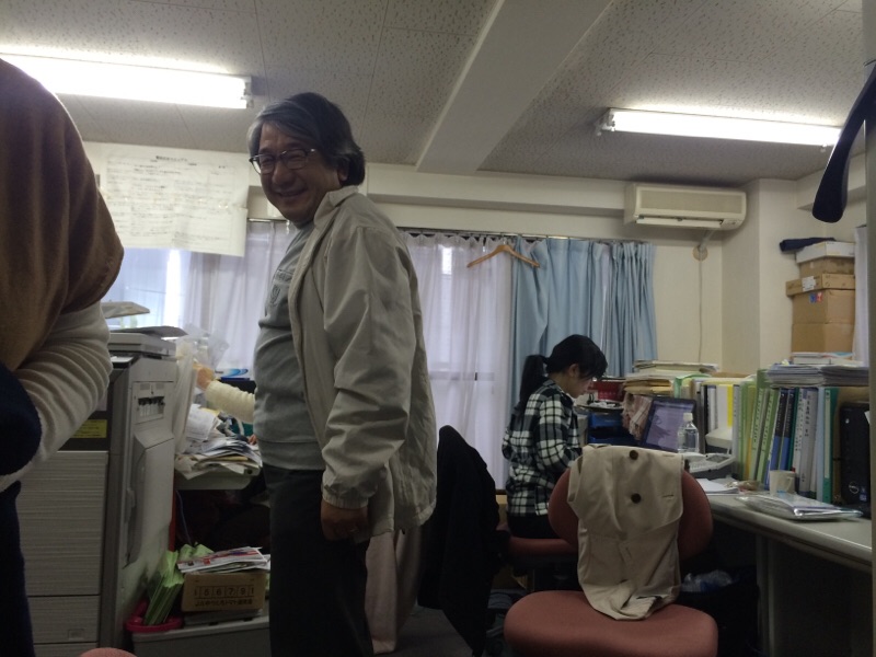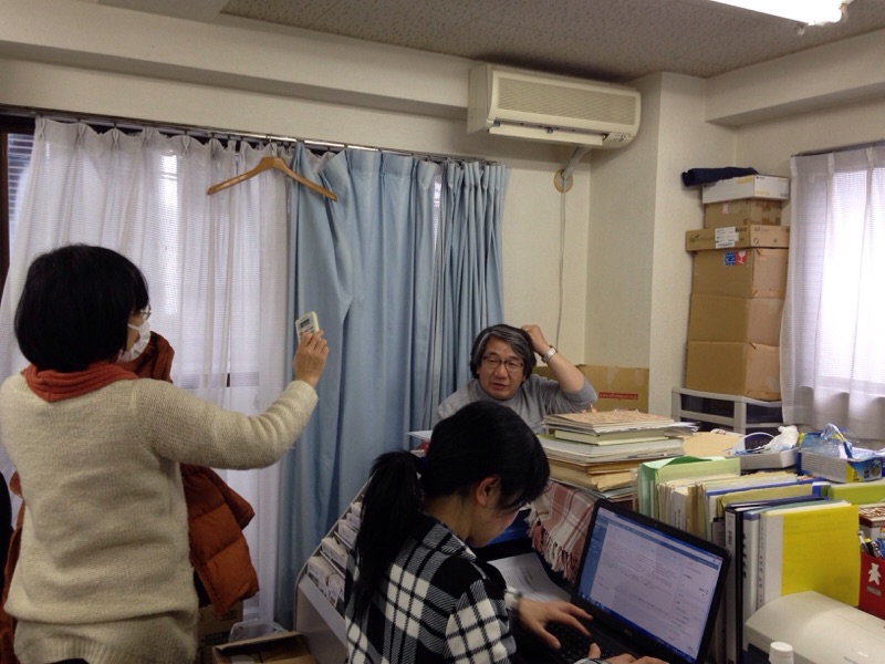 只今、真境名総主事、電話対談中です。 MEGUMI