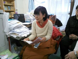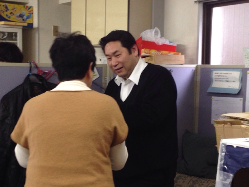 ミーティング中にも 電話がかかってきたりして、外に出て電話応対をする忙しい真境名総主事。 電話が終わって、そぉ~~~っと入室中(!) MEGUMI