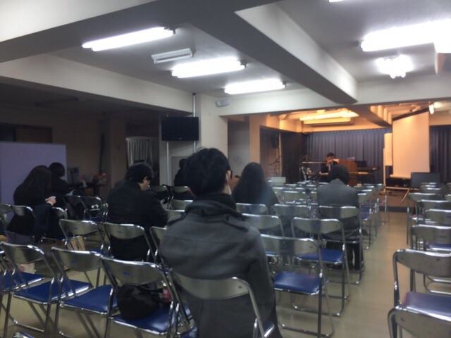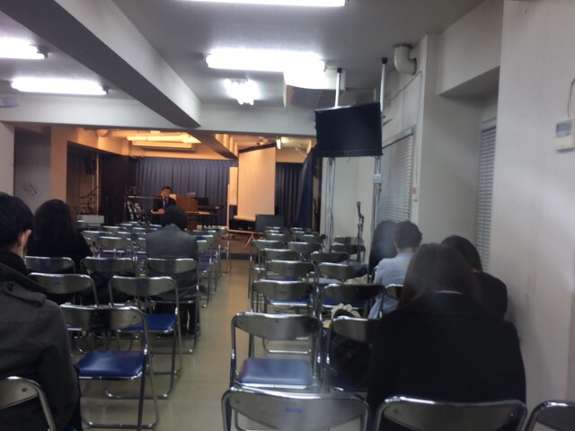 会堂の後ろで藤田くん、パソコンの奉仕をしているんでしょうか? うずくまっている感じですね!