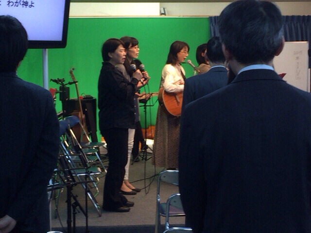 賛美の前にお祈りをしていた今村さん。