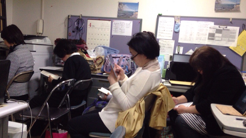 インターナショナル礼拝のブース内の様子! スタッフ全員女性です! 女性が用いられる教会です! 礎の石事務局も私以外は全員女性です! peter