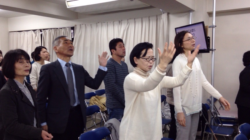 第二礼拝会場は、賛美の臨在に包まれています。会衆の人数が増しています。