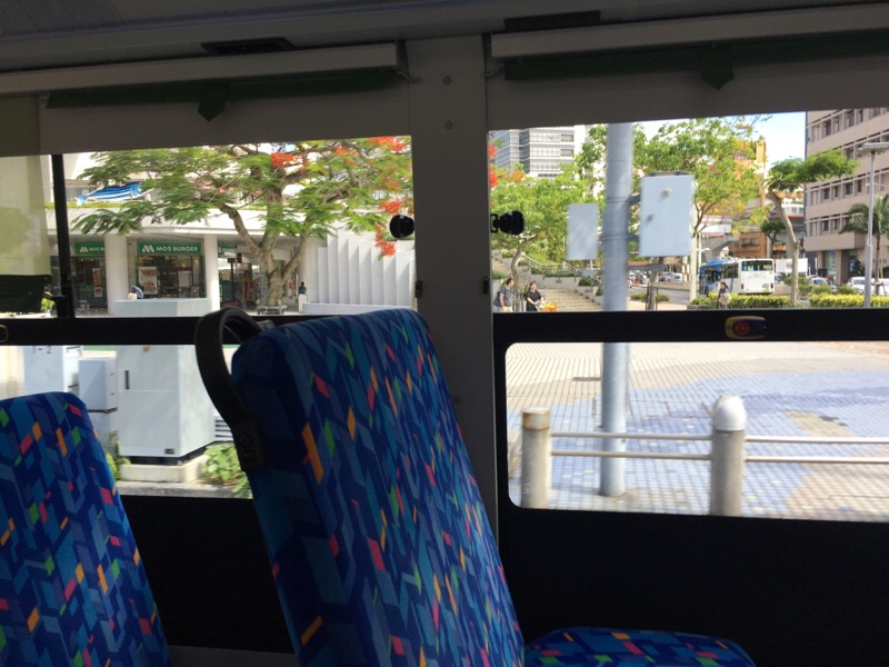 メイン通りの58号線を走っています。 空港のカウンター案内では、高速バスの出発時間より20分ほど早い在来線のほうが早く名護に着くとのことでしたので、ただいま下道運行中であります! peter