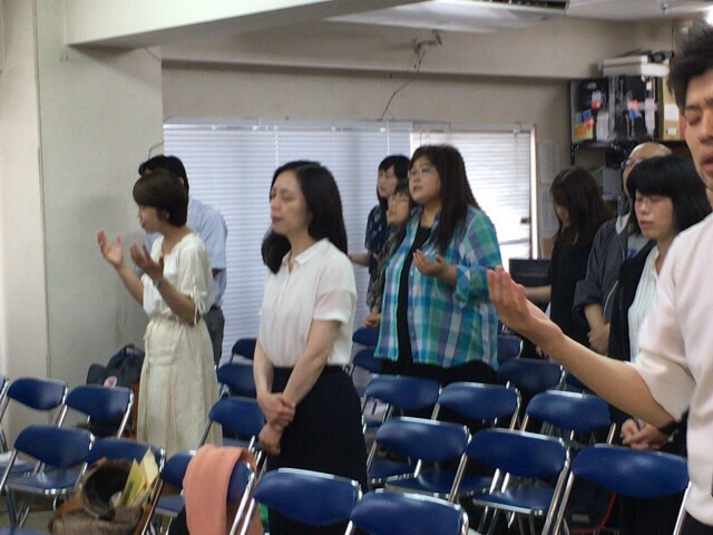 東京アンテオケ教会の牧師である秋元さんが導かれる賛美の時です。