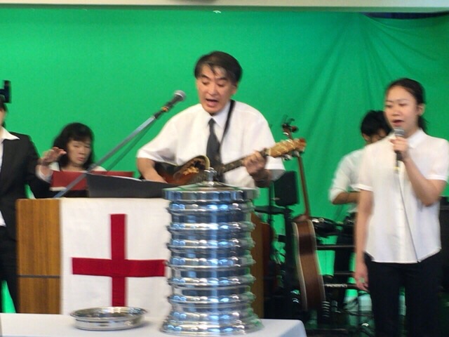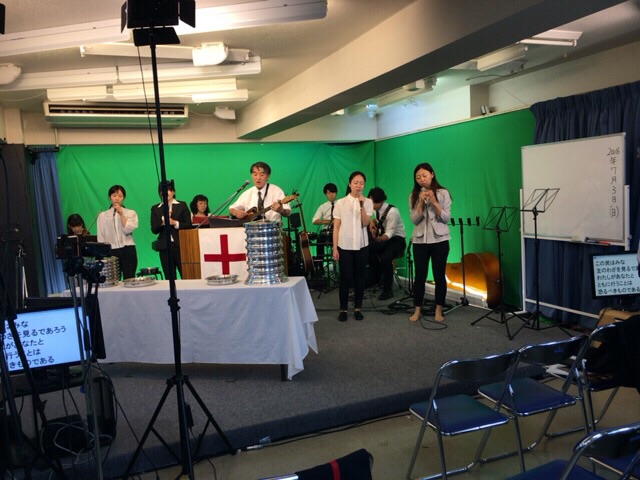日曜第一礼拝がスタートしました! 賛美リーダーは山川さんです。