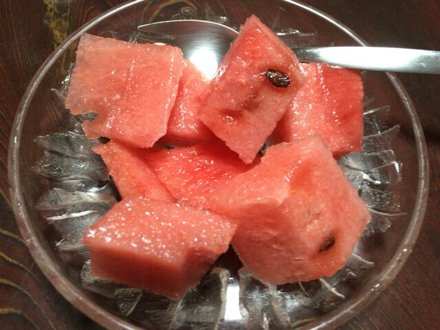 無事に実家に到着しました! バスは1時間かかるところが1時間15分かかりました。 思ったより早かったです。 スイカ食べてます。 Kayano