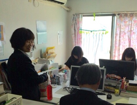 会計業務が続いています! 加藤さんも来られました〜♪ (教会事務所)