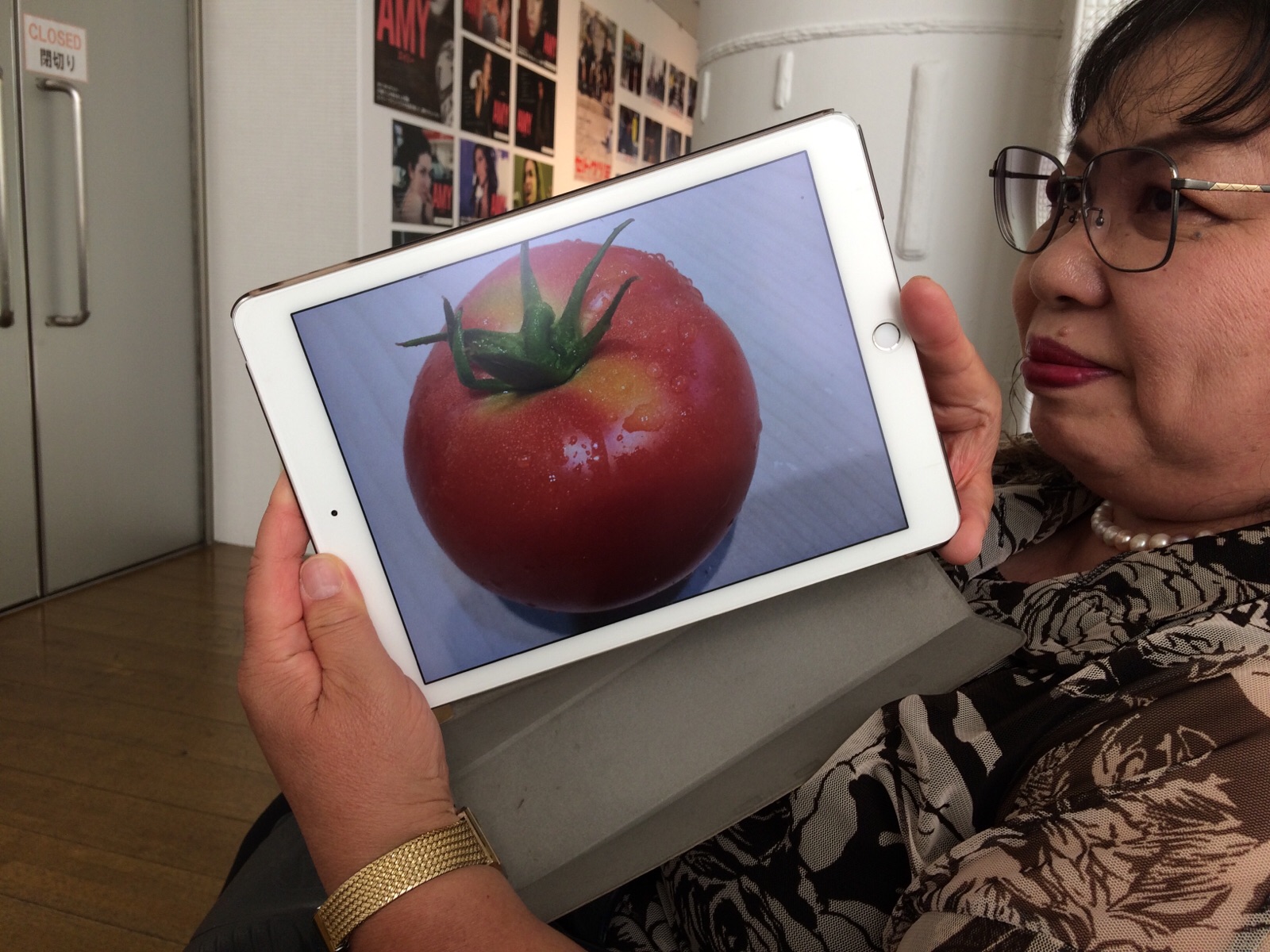 まどかさんが今朝、庭で取ったトマトだそうです。 うちの父は、野菜は作ってないです。庭には薔薇が沢山。 ミカエル