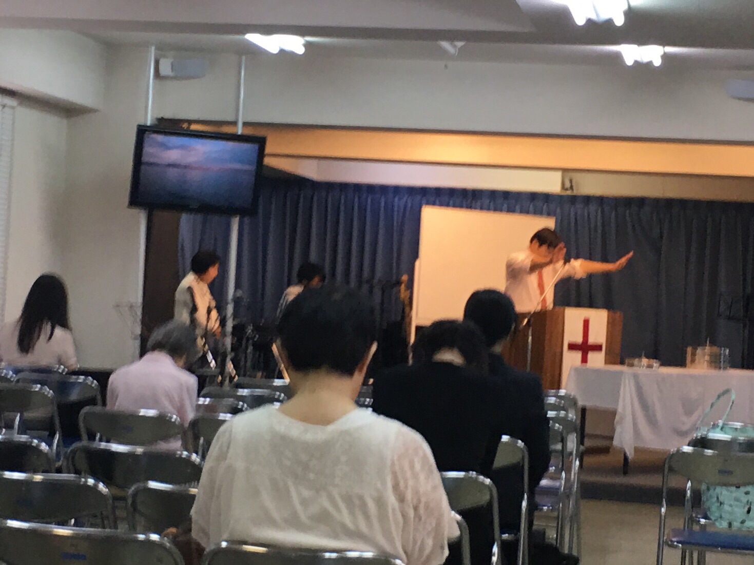 第二礼拝がスタートしました! 賛美リーダーは真境名お父さんです。