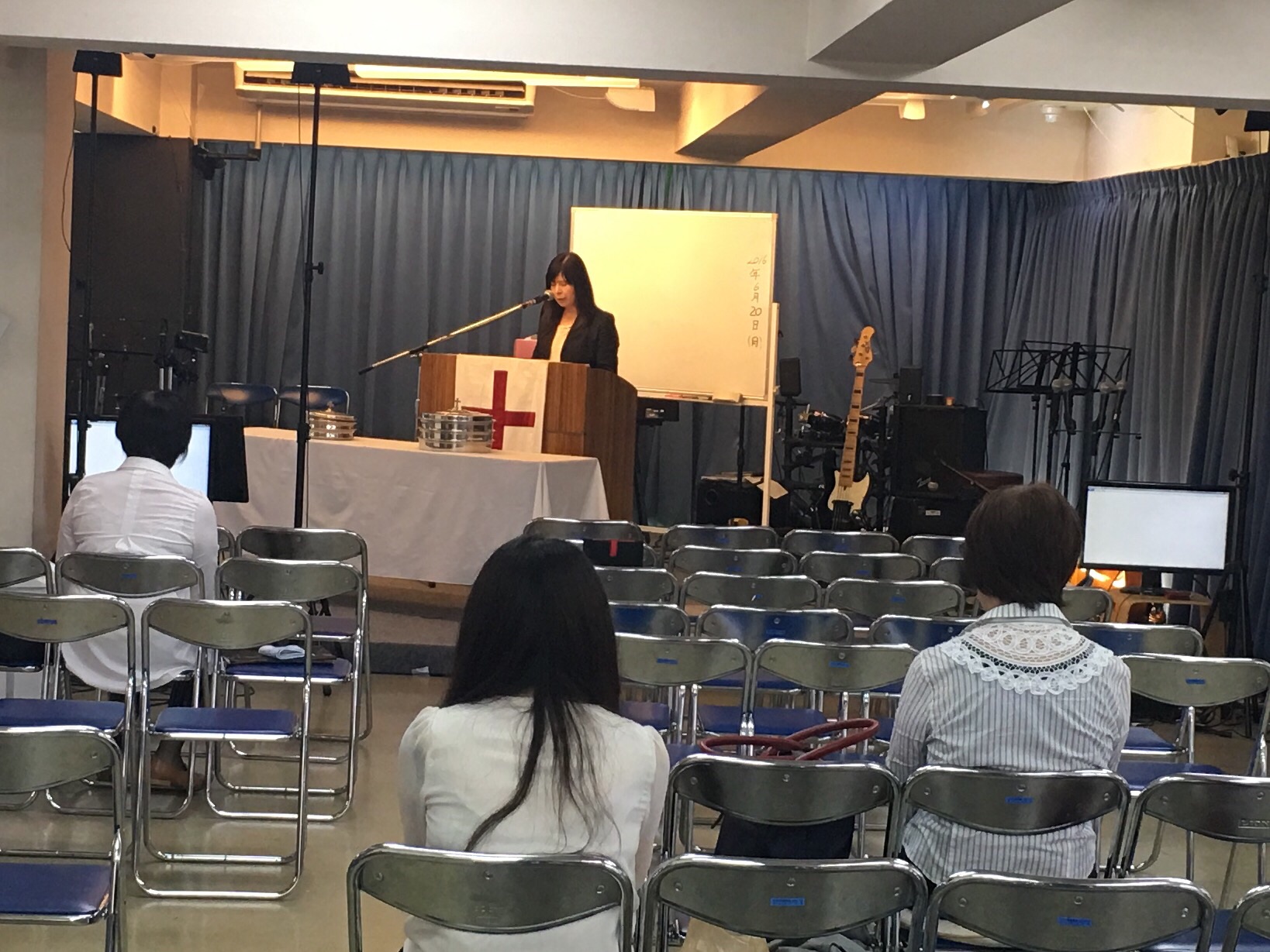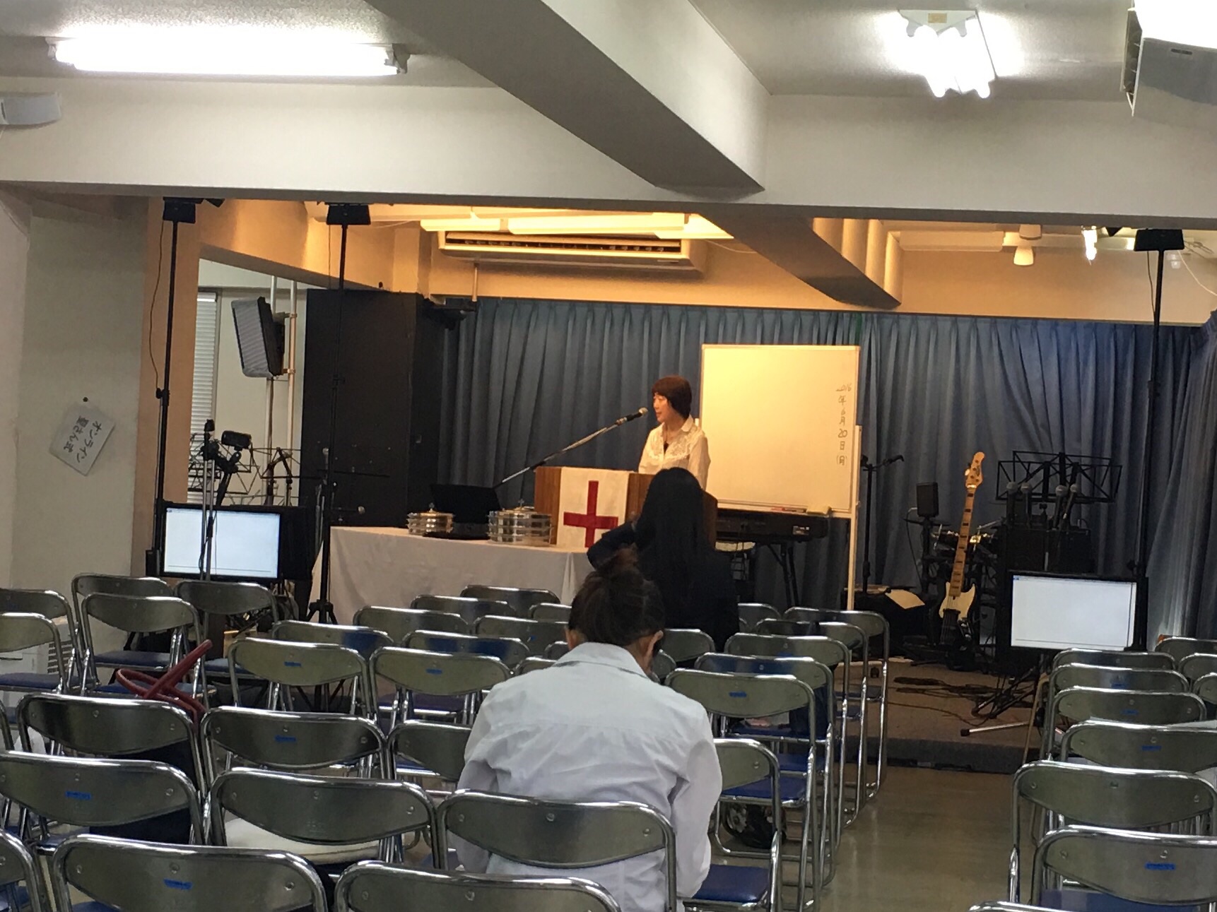 聖餐式の時。 メッセンジャーの萱野さんが導きます。