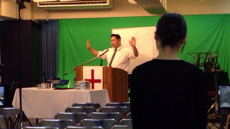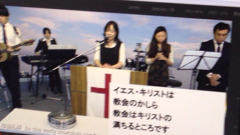 女子大生と中学生の女の子のお父さん、ダニエル森さん賛美リードで会衆賛美♫