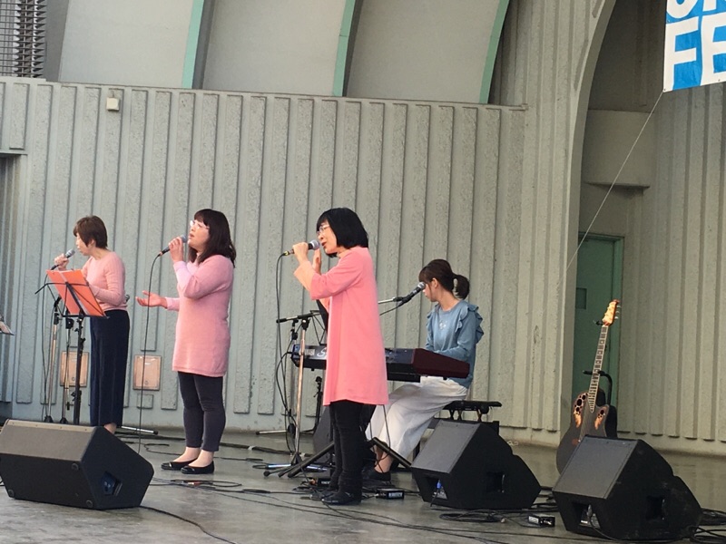 とても綺麗な歌声が会場に響きます。 メンバーの1人は礎の石孤児院スタッフの吉田さんです。礎の石事務局