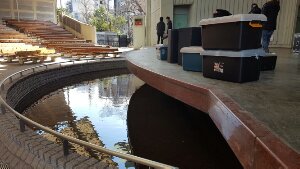 ステージの前には堀(?)があります。 熱くなったファンが舞台に押し寄せないため…でしょうか?