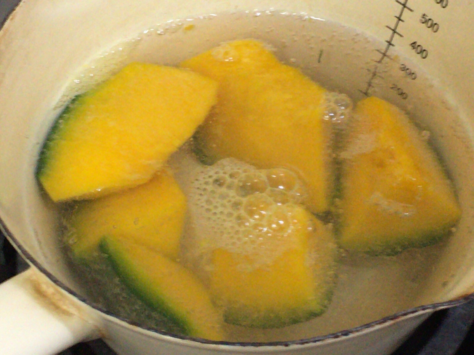 帰って来たら、夕飯作りです。 カボチャを煮てます。 Kayano