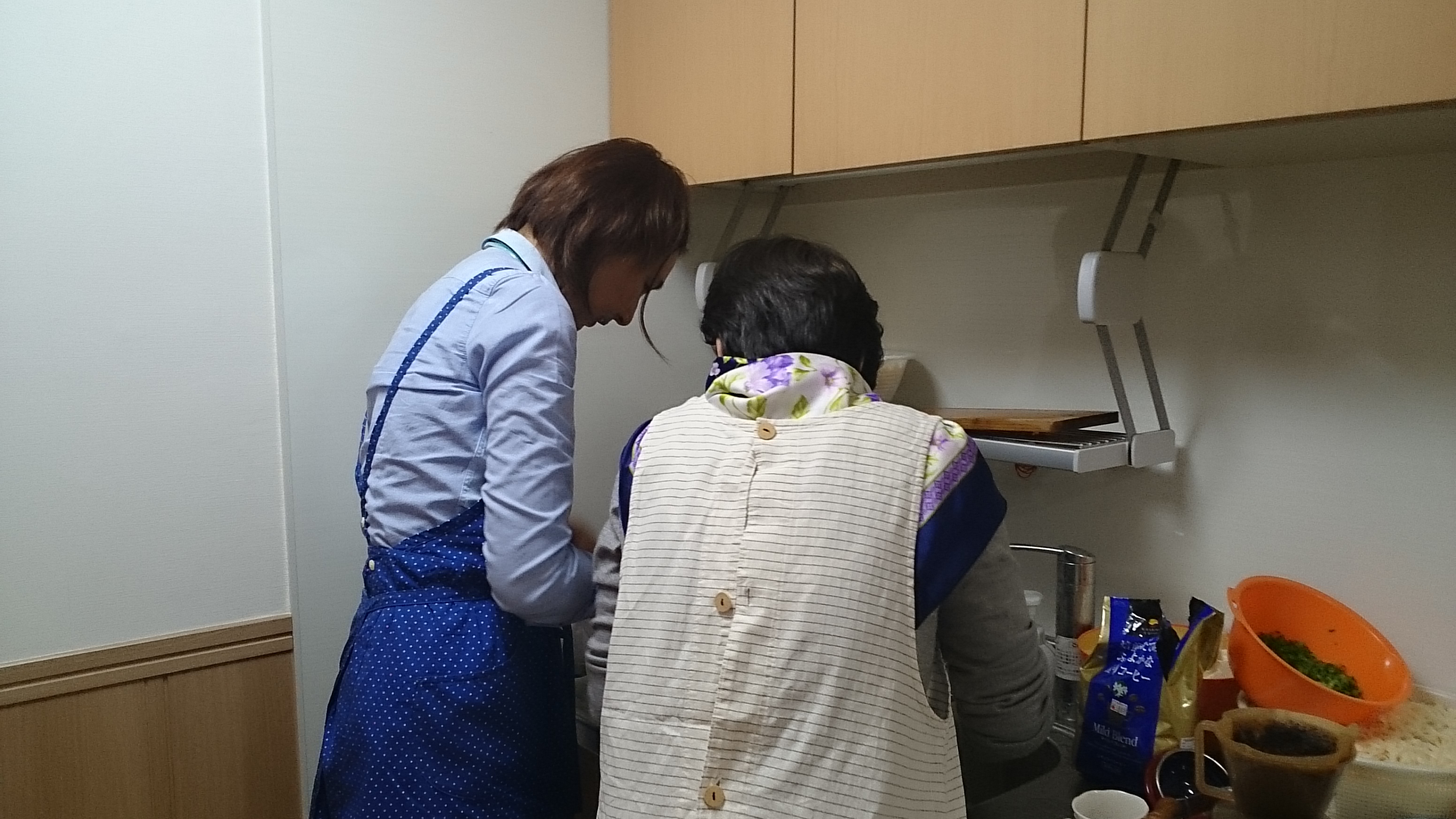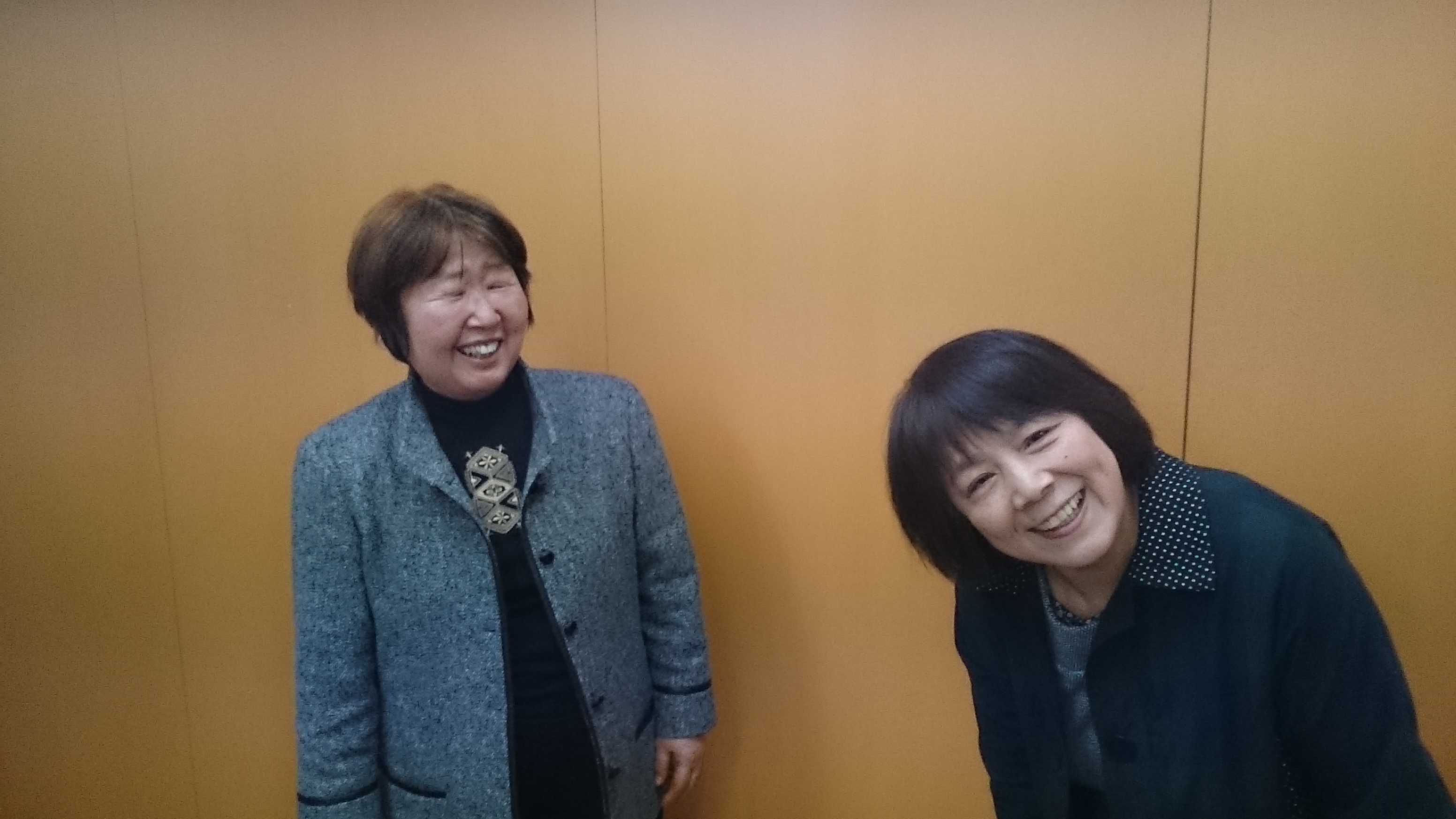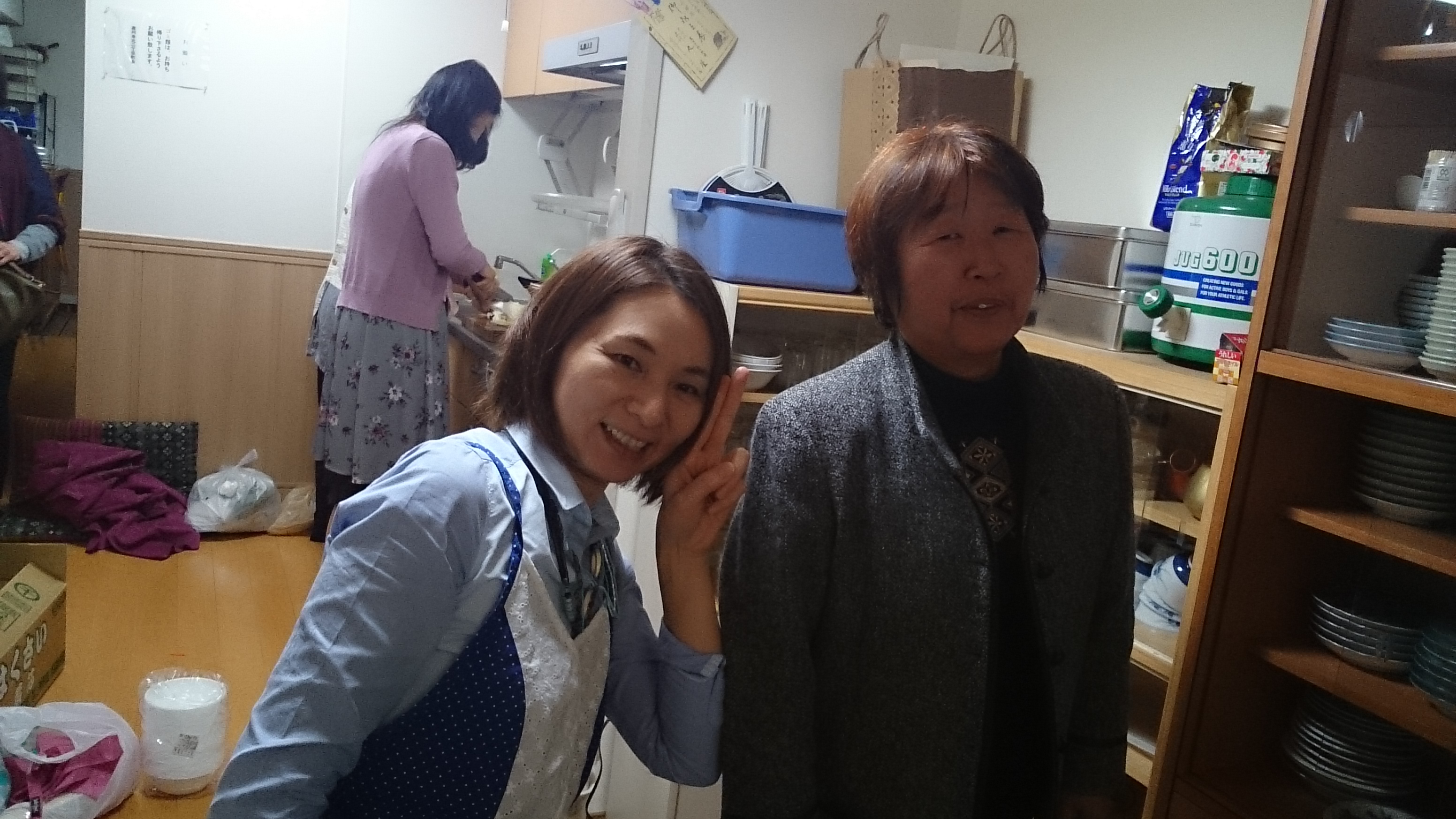佐田さんは中腰です。「よく気が利くね‼」と辻郷さんほめています。