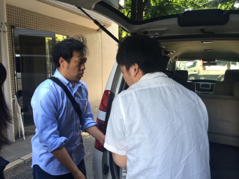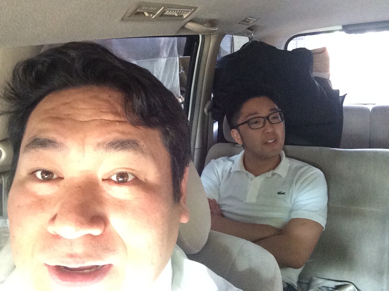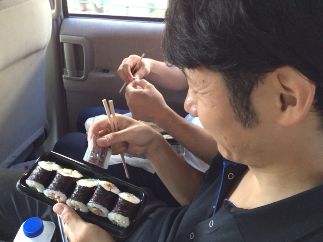 運転手の真境名牧師、おにぎり食べて充電完了!