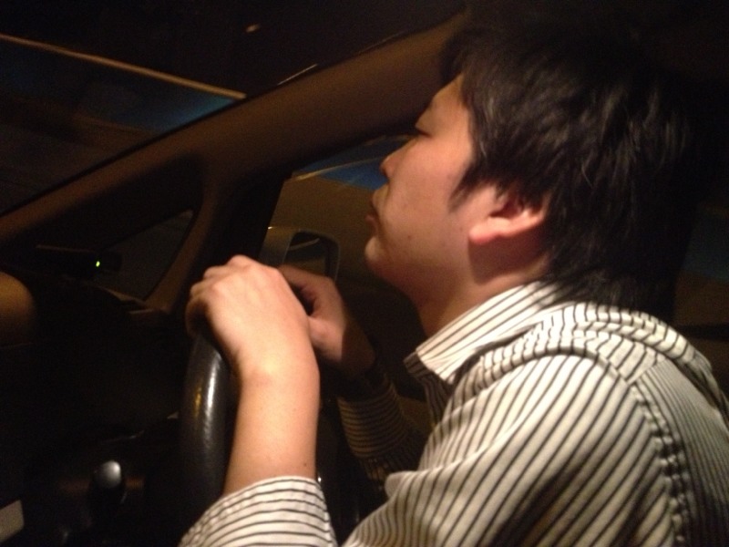 運転中のサムエルさん! 何だか、わんちゃんのような?