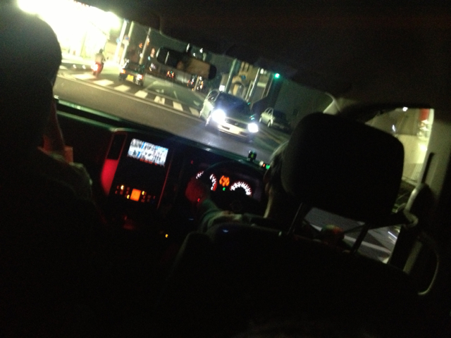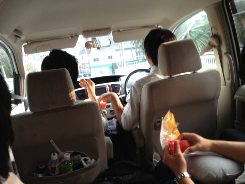次のところへの移動の車の中で、差し入れのプチシューを食べてます!