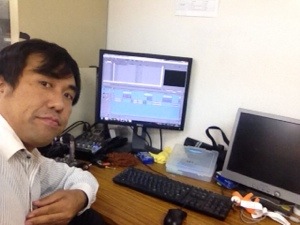 只今、今日アップの真境名牧師の夫婦でどたばたラジオの編集中!