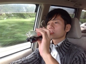 コーラとコーヒーを飲んで運転をガンバるダビデ君!