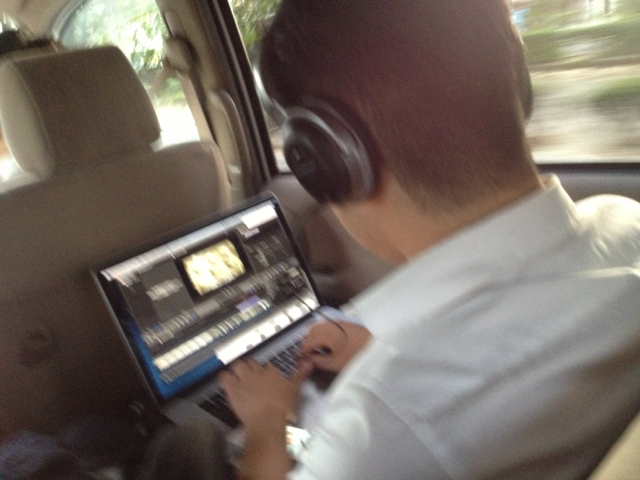 ヨハネ君は車の中でも映像のお仕事してます! 真剣!