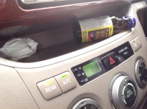 温度が19度です!すずし〜! 栄養ドリンクの瓶、発見!ダビデ君、栄養ドリンクを飲みましたー?