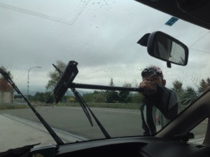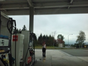 ガソリンスタンドへ。 いつもより拭き拭きしてます。