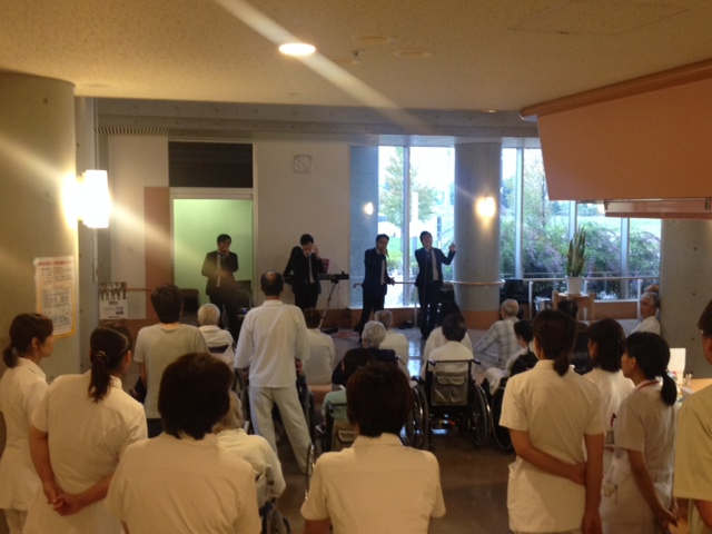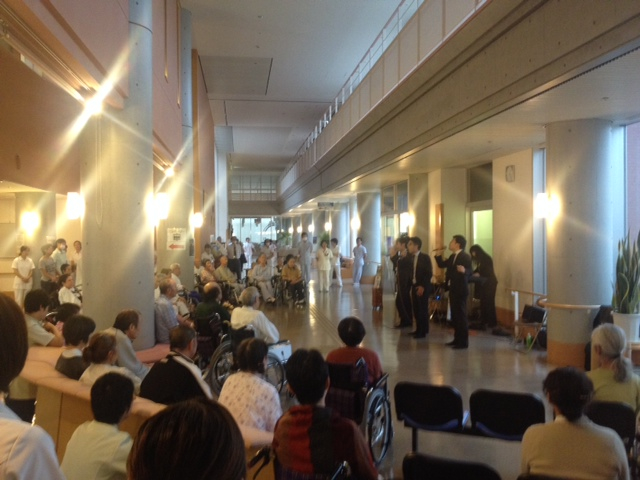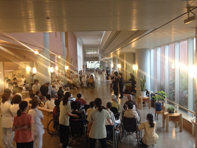 30分のコンサートで、患者さん、看護師の方々など沢山集まってます!