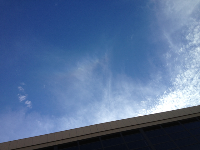 路上ライブの途中ですが、 空に彩雲が出てます!