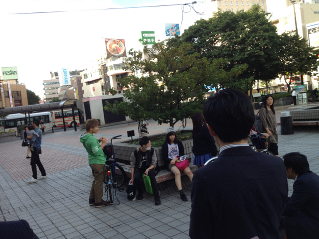 最初は準備の段階で、警備員さんに止められて、小さな音で、機材使わずやってました。