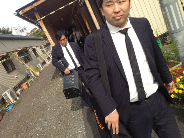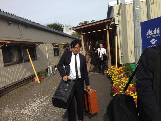 コンサート終わって仮設住宅を出る写真です。