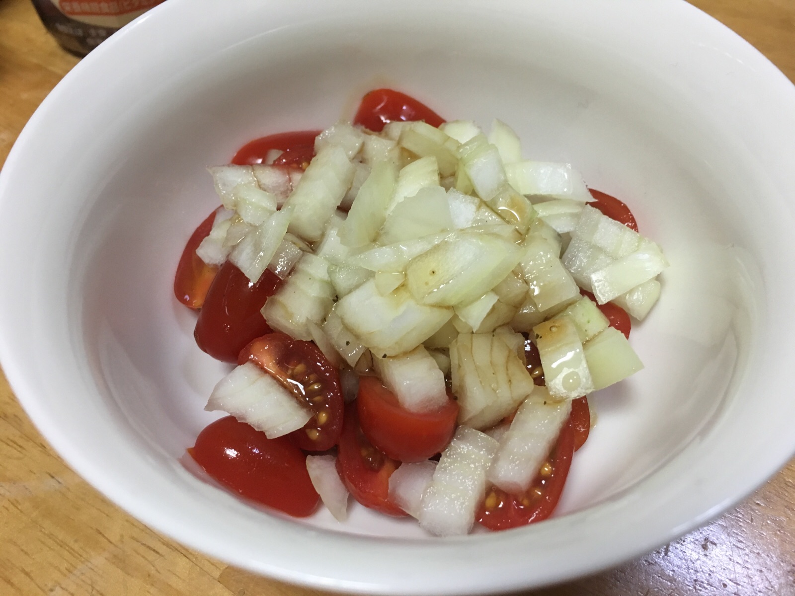 今日のお昼を作ってます。 トマトと玉ねぎのサラダ。 ブログを見て、真似して作ってみました。 Kayano
