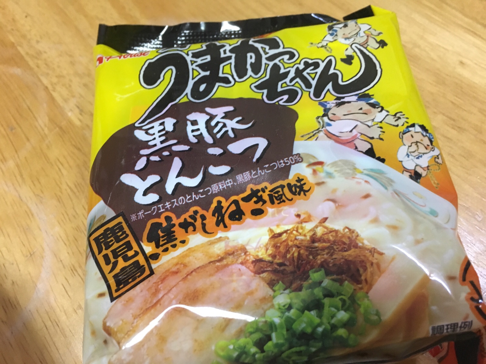 そして、今日のメインはうまかっちゃん! 黒豚とんこつ、焦がしねぎ風味。 Kayano