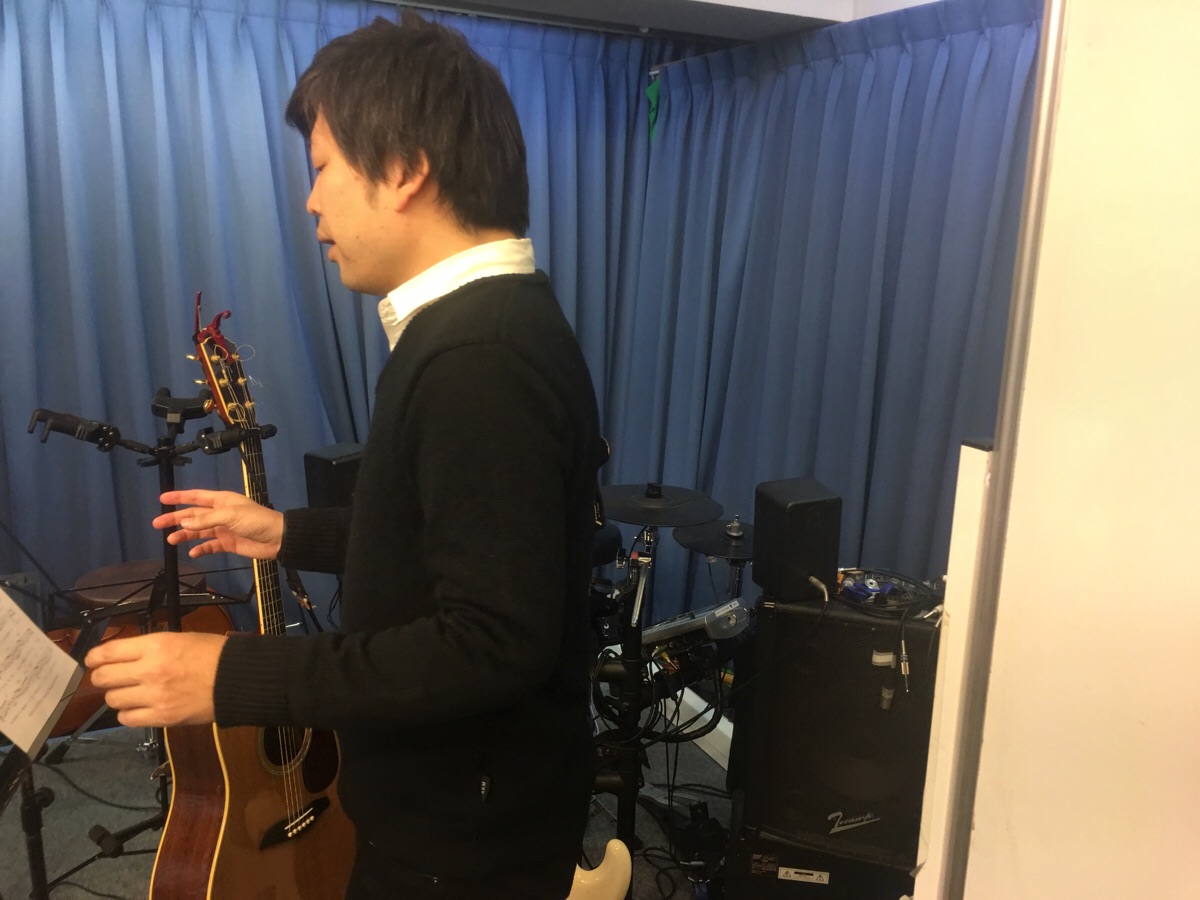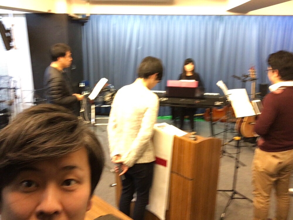 新しい曲のハーモニーを合わせています。