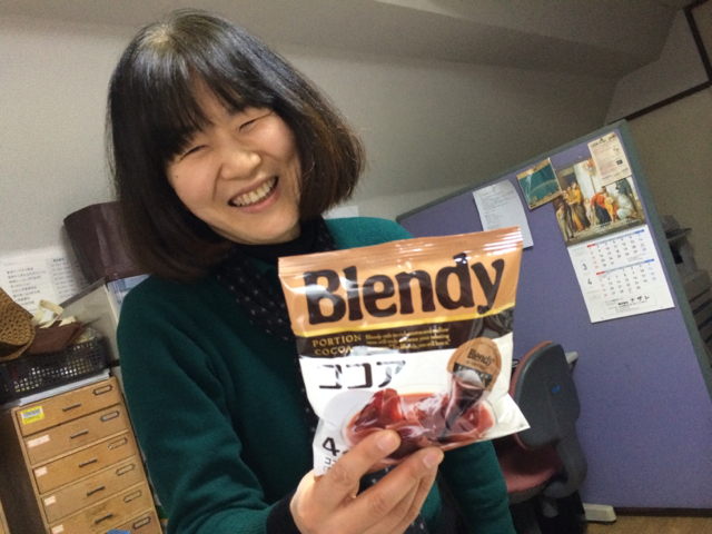加藤さんが郵便局から帰って来ました! これ10円だった! と ココアを買って来たそうです! Kayano