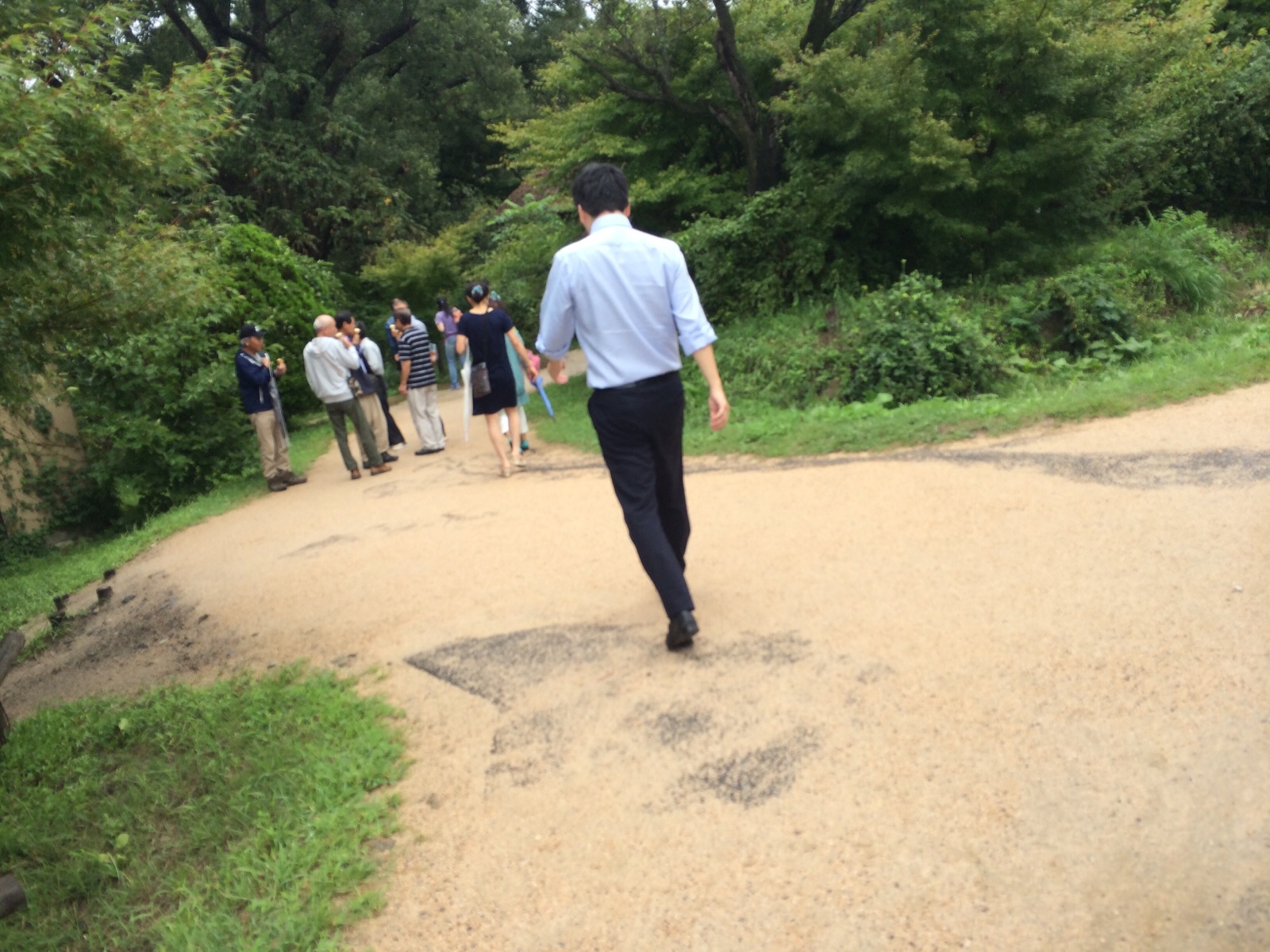 路上ライブの場所をどこにするか? 敷地を案内して頂いてます。