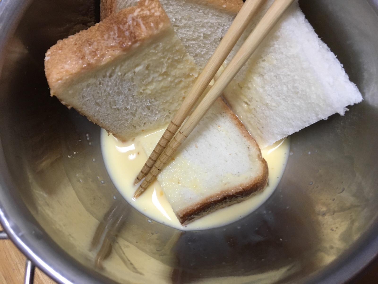今、お昼のフレンチトーストを作ってます。 Kayano