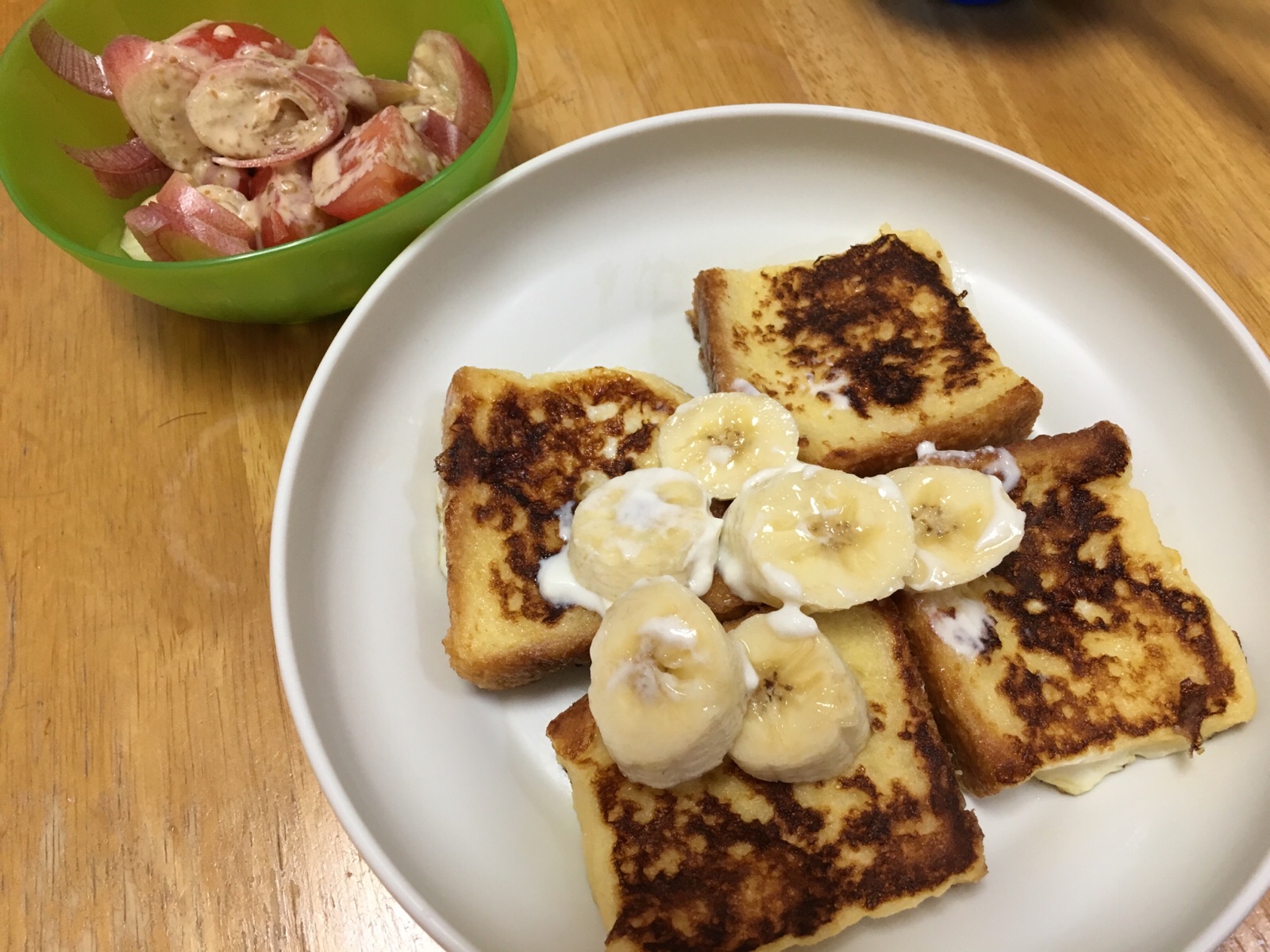 お昼はフレンチトーストを作って食べました。 バナナを載せて。 Kayano