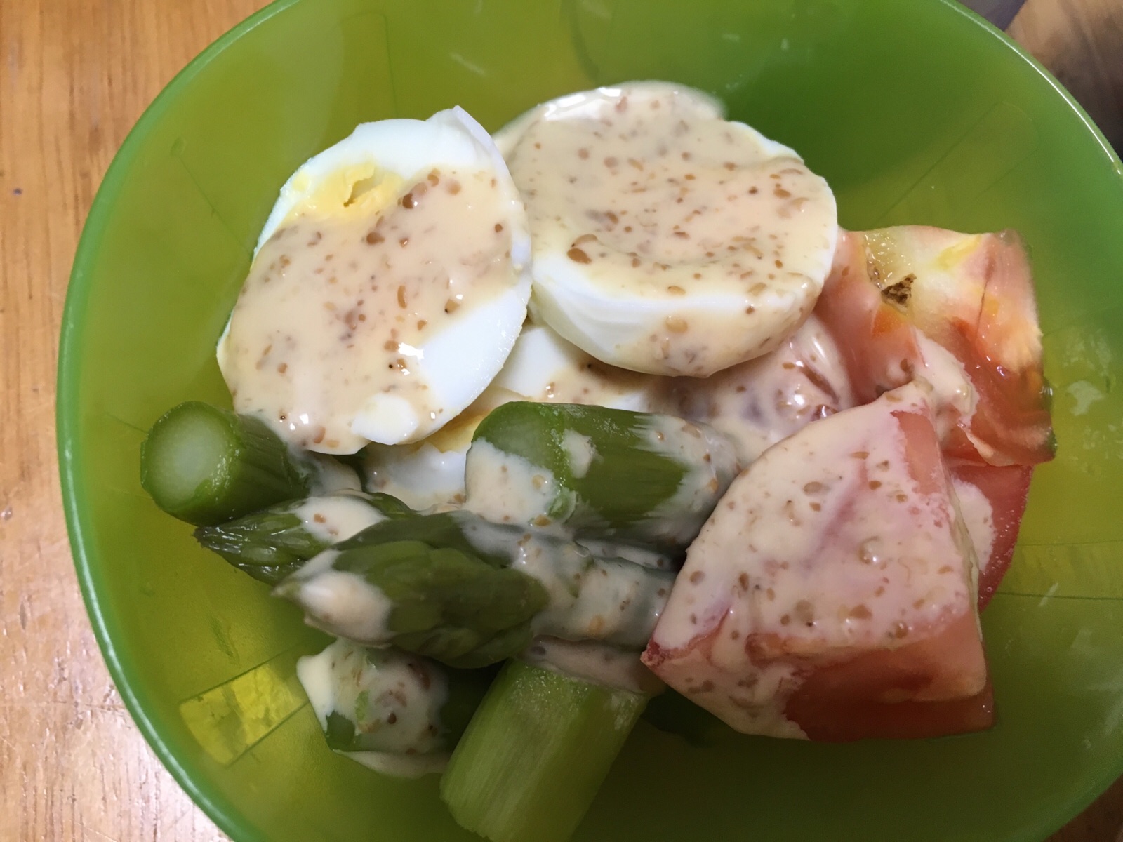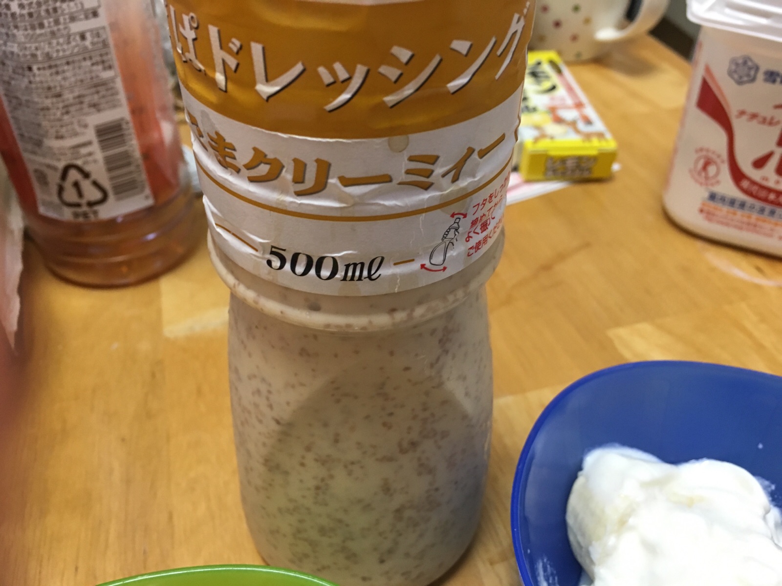 サラダには、Giftsが諏訪ツアーした時に戴いたぱぱドレッシングをかけて食べます。 Kayano