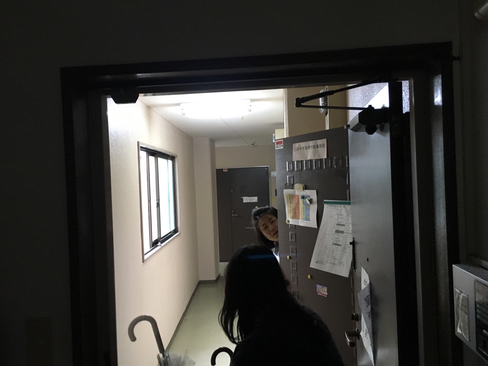 素早く教会事務所のドアを開けに行って下さった天谷則子さん! 神学校も山中さんがドアを開けてます。 Kayano