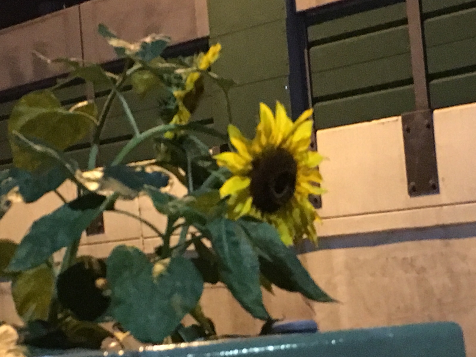 帰り途で、ひまわりが咲いています。 もう秋ですが… でもいいですね〜(^_^) Kayano