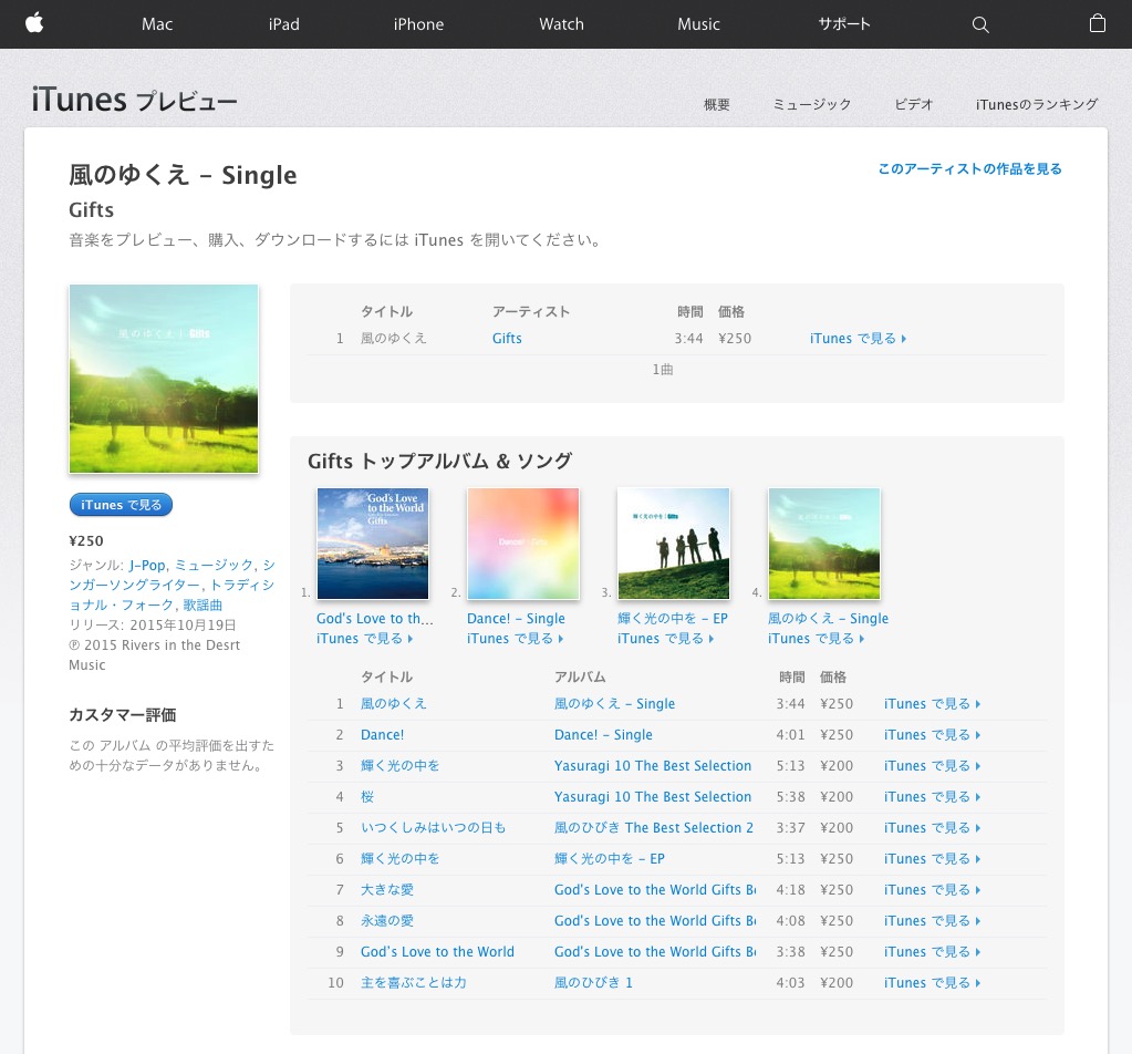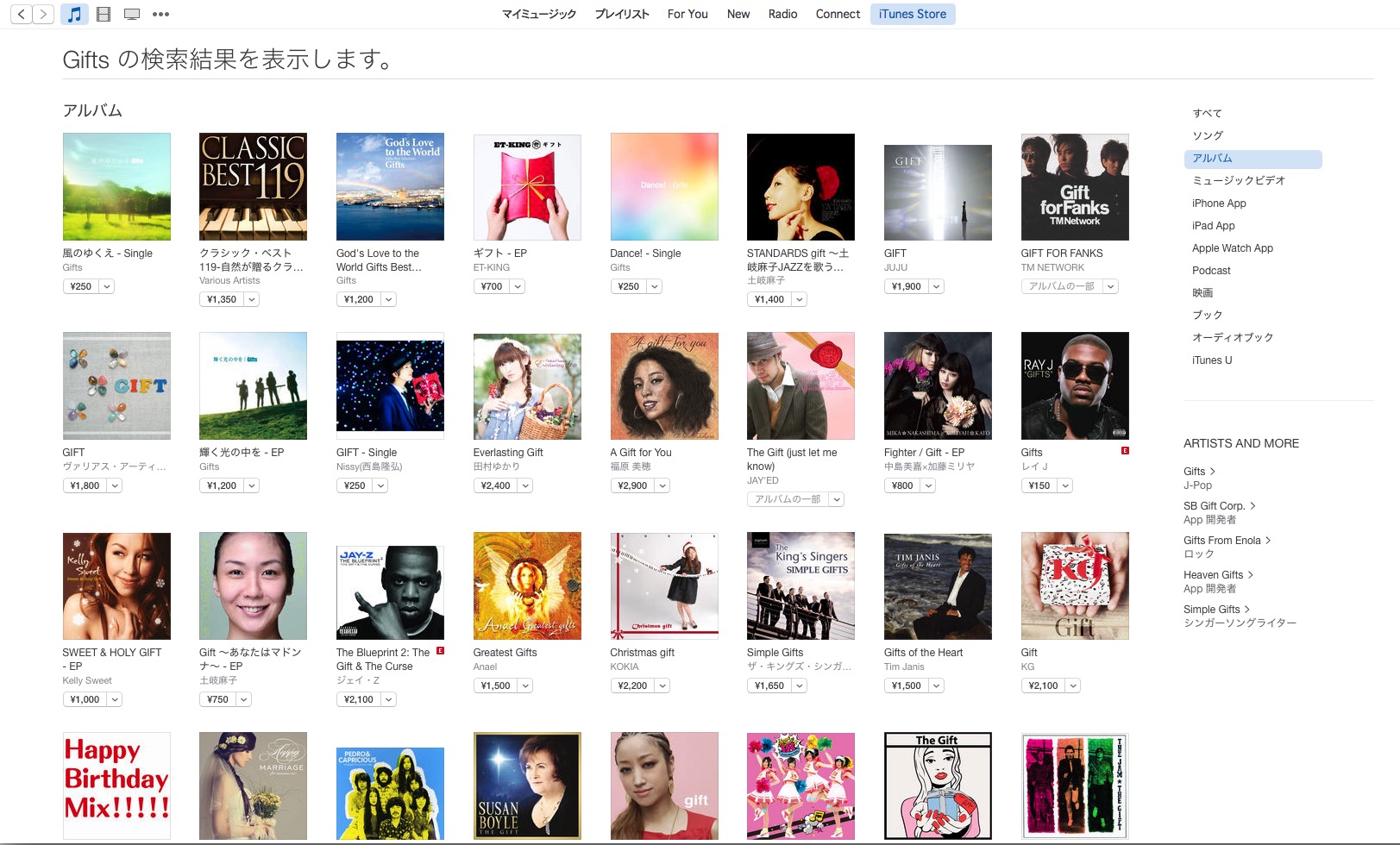 iTunes Storeで”Gifts”で検索すると〜・・・こんな感じで出てきますよ!新曲だけに一番あたまにでてきます! Samuel