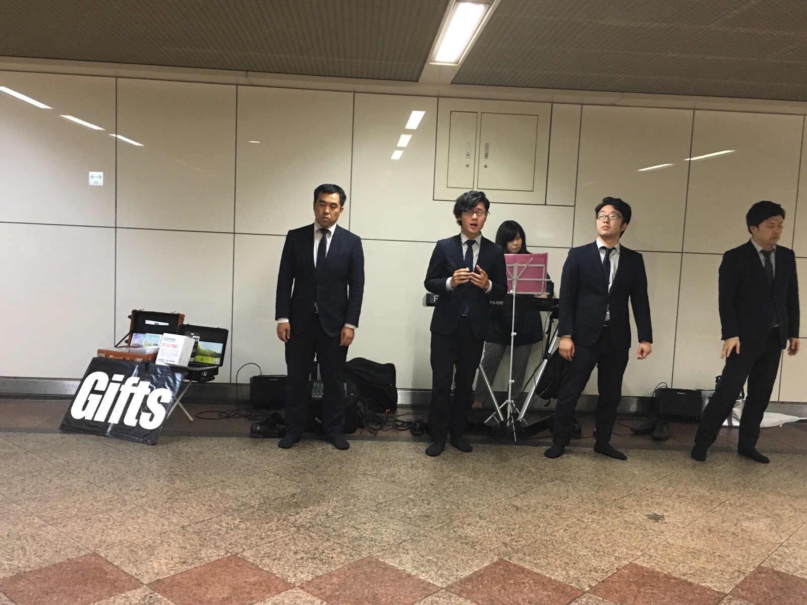 ここではマイク無しで歌いました。 何人かの方が聴いておられ、年配の女性の方や、ギターを持った若い男性など聴いてました。 女性の方がCDを買って、写真撮っていかれました!