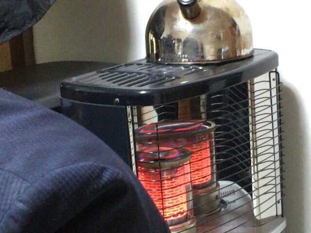 今日の岡山はちょっと寒いです。 よしえさんがストーブを付けて下さいました。